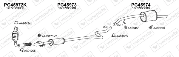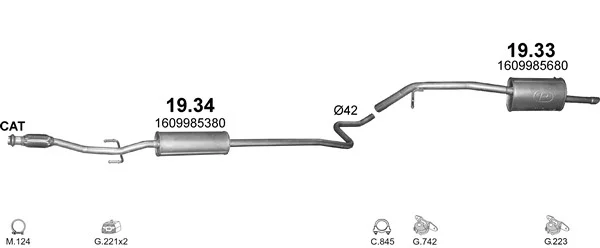 PEUGEOT 301 1.2 VTi 72 - Výfukový systém - kompletní od 11/2012, 1199 ccm, 53 kW, 72 hp, HMY (EB2M), limuzína