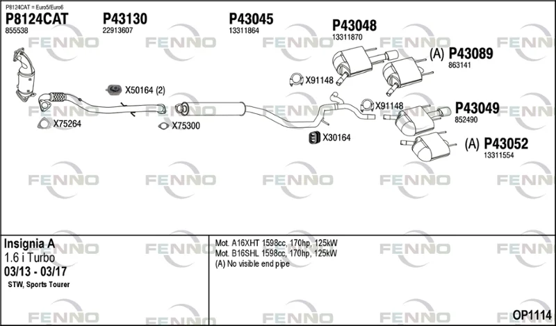 OPEL INSIGNIA A Sports Tourer (G09) 1.6 SIDI (35) - Výfukový systém - kompletní od 6/2013 do 3/2017, 1598 ccm, 125 kW, 170 hp, A 16 XHT, B 16 SHL, kombi