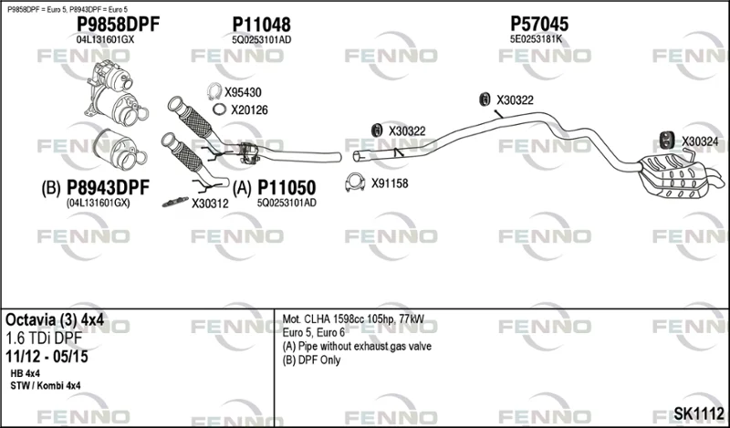 SKODA OCTAVIA III Combi (5E5, 5E6) 1.6 TDI 4x4 - Výfukový systém - kompletní od 11/2012 do 5/2015, 1598 ccm, 77 kW, 105 hp, CLHA, kombi
