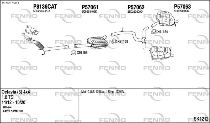 SKODA OCTAVIA III Combi (5E5, 5E6) 1.8 TSI 4x4 - Výfukový systém - kompletní od 11/2012 do 2/2017, 1798 ccm, 132 kW, 180 hp, CJSB, kombi
