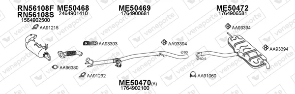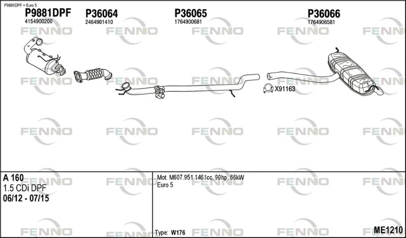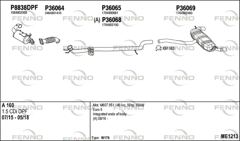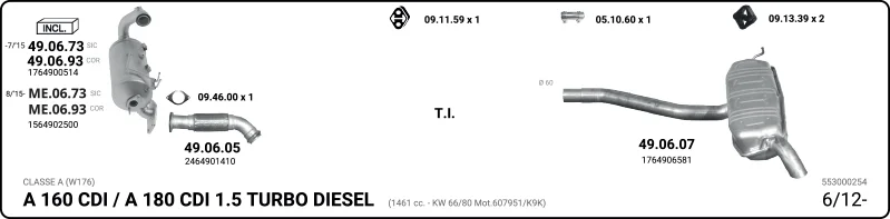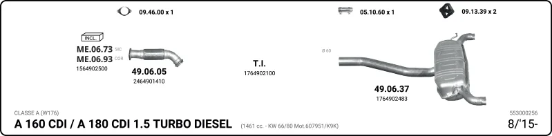 MERCEDES-BENZ A-CLASS (W176) A 160 CDI / d (176.011) - Výfukový systém - kompletní od 6/2013 do 5/2018, 1461 ccm, 66 kW, 90 hp, OM 607.951 (K9K), Šikmá zadní část