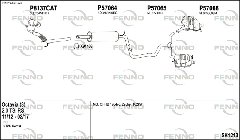 SKODA OCTAVIA III Combi (5E5, 5E6) 2.0 TSI RS - Výfukový systém - kompletní od 11/2012 do 2/2017, 1984 ccm, 162 kW, 220 hp, CHHB, kombi
