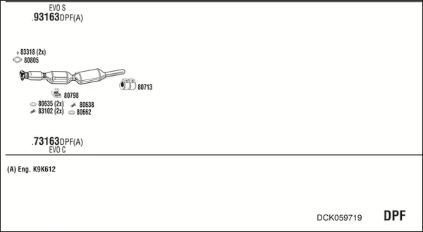 DACIA LOGAN MCV II 1.5 dCi - Výfukový systém - kompletní od 2/2013, 1461 ccm, 66 kW, 90 hp, K9K 612, K9K 626, kombi