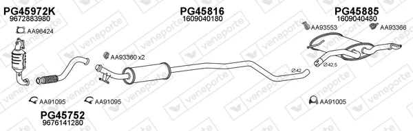 PEUGEOT 308 II (LB_, LP_, LW_, LH_, L3_) 1.2 VTi 72 - Výfukový systém - kompletní od 9/2013 do 6/2021, 1199 ccm, 60 kW, 82 hp, HMZ (EB2F), Šikmá zadní část