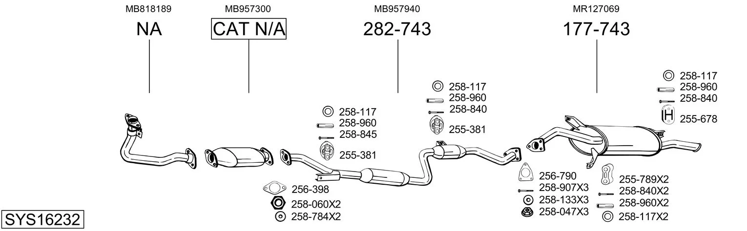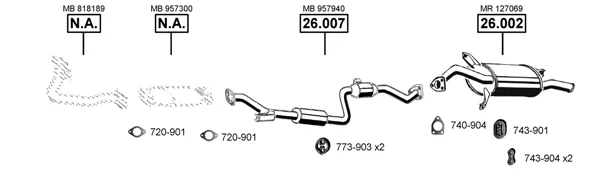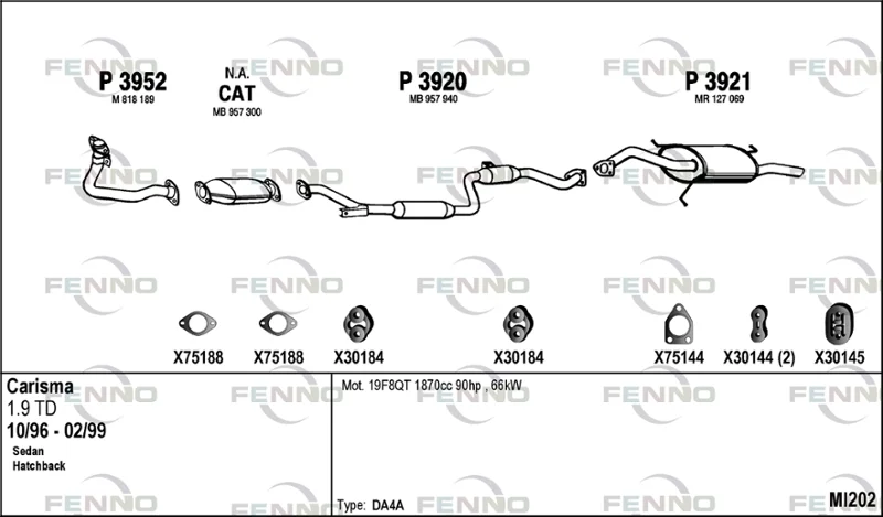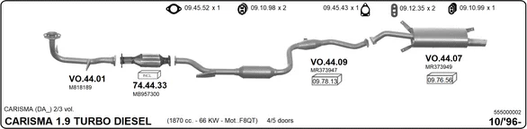 MITSUBISHI CARISMA (DA_) 1.9 TD (DA4A) - Výfukový systém - kompletní od 10/1996 do 9/2000, 1870 ccm, 66 kW, 90 hp, F8QT, Šikmá zadní část