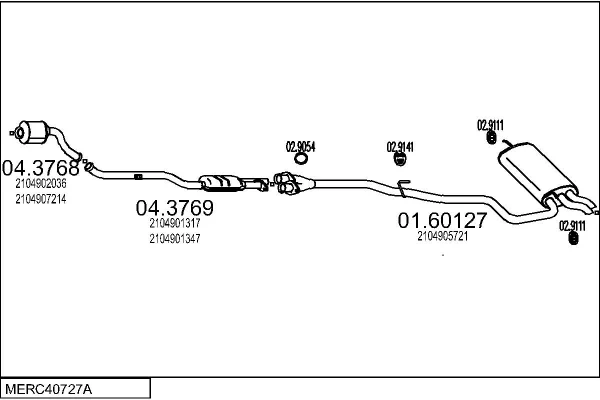 MERCEDES-BENZ E-CLASS T-Model (S210) E 270 T CDI - Výfukový systém - kompletní od 2/2000 do 3/2003, 2685 ccm, 120 kW, 163 hp, OM 612.961, kombi