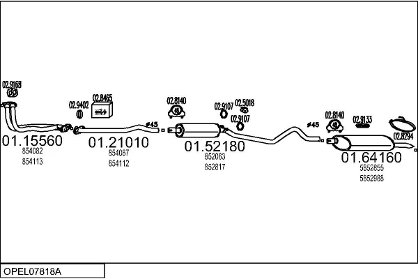 OPEL KADETT E Šikmá zadní část (T85) 1.8 GSI (C08, C48, D08, D48) - Výfukový systém - kompletní od 9/1984 do 8/1986, 1796 ccm, 85 kW, 115 hp, 18 E, 18 SE, 18 SEH, Šikmá zadní část