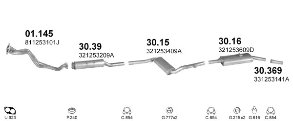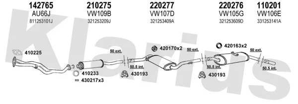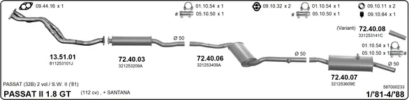 VW PASSAT B2 Variant (33B) 1.8 - Výfukový systém - kompletní od 12/1983 do 3/1988, 1781 ccm, 82 kW, 112 hp, DZ, kombi