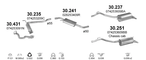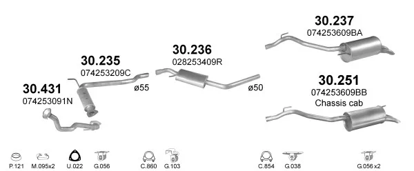 VW TRANSPORTER T4 Krabice (70A, 70H, 7DA, 7DH) 2.4 D - Výfukový systém - kompletní od 7/1990 do 4/1998, 2370 ccm, 57 kW, 78 hp, AAB, Krabice