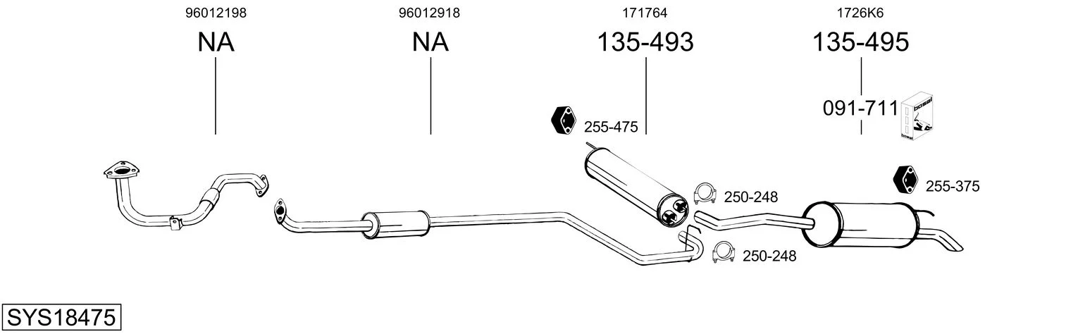 CITROËN BX (XB-_) 14 - Výfukový systém - kompletní od 1/1989 do 12/1989, 1360 ccm, 47 kW, 64 hp, K1H (TU3A), Šikmá zadní část