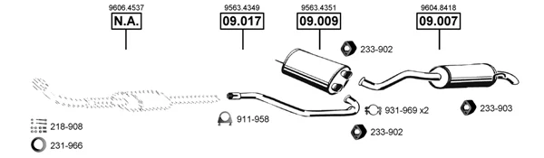 CITROËN BX (XB-_) 19 GTi 16V - Výfukový systém - kompletní od 9/1987 do 12/1988, 1905 ccm, 116 kW, 158 hp, D6C (XU9J4), Šikmá zadní část