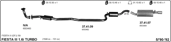 FORD FIESTA III (GFJ) 1.6 Turbo (FBJT) - Výfukový systém - kompletní od 3/1990 do 10/1992, 1598 ccm, 96 kW, 131 hp, LHA, Šikmá zadní část