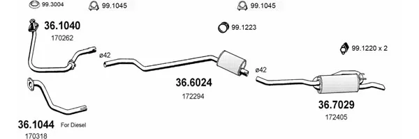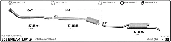 PEUGEOT 305 II Break (581E) 1.6 - Výfukový systém - kompletní od 11/1986 do 12/1988, 1580 ccm, 54 kW, 73 hp, BAZ (XU5CP), kombi