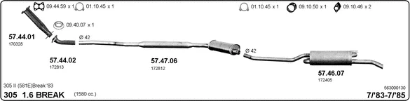 PEUGEOT 305 II Break (581E) 1.6 - Výfukový systém - kompletní od 2/1986 do 12/1988, 1580 ccm, 55 kW, 75 hp, B1A (XU51C), kombi