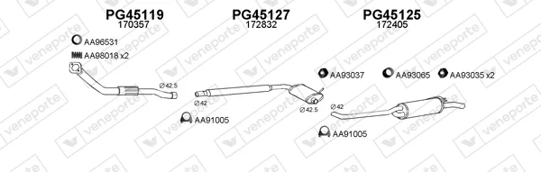 PEUGEOT 305 II Break (581E) 1.6 - Výfukový systém - kompletní od 7/1984 do 12/1987, 1580 ccm, 66 kW, 90 hp, 171 (XU5S), kombi