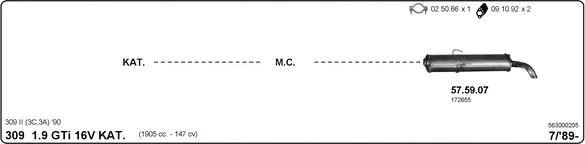 PEUGEOT 309 II (3C, 3A) 1.9 GTI 16V - Výfukový systém - kompletní
