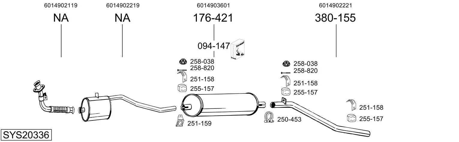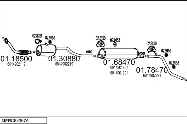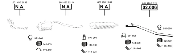 MERCEDES-BENZ T1 Krabice (B602) 309 D 3.0 - Výfukový systém - kompletní od 10/1982 do 1/1990, 2998 ccm, 65 kW, 88 hp, OM 617.913, Krabice