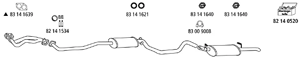OPEL ASCONA C Šikmá zadní část (J82) 1.6 i (F68, M68) - Výfukový systém - kompletní od 9/1987 do 8/1988, 1598 ccm, 55 kW, 75 hp, E 16 NZ, Šikmá zadní část