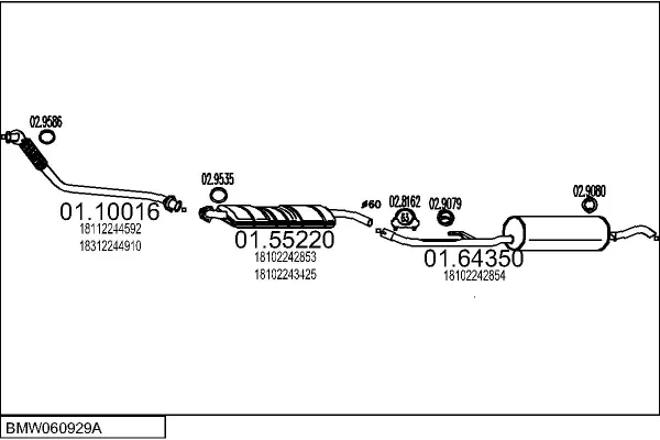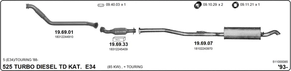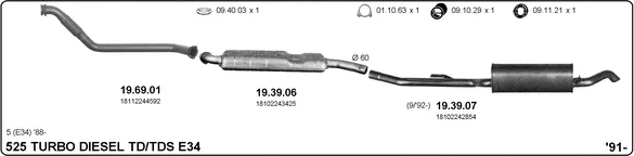 BMW 5 (E34) 525 td - Výfukový systém - kompletní od 3/1993 do 8/1995, 2497 ccm, 85 kW, 115 hp, M51 D25 (256T1), limuzína