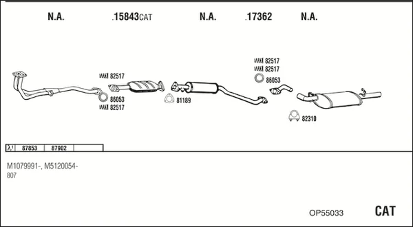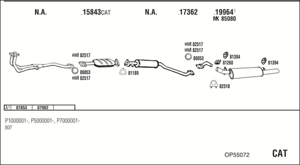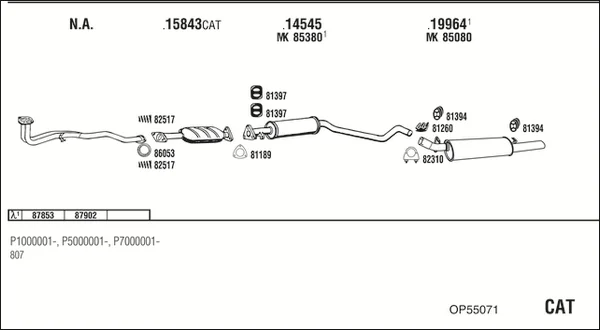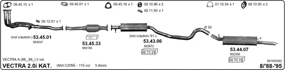 OPEL VECTRA A Šikmá zadní část (J89) 2.0 i Cat (F68, M68) - Výfukový systém - kompletní od 9/1988 do 11/1995, 1998 ccm, 85 kW, 116 hp, C 20 NE, Šikmá zadní část