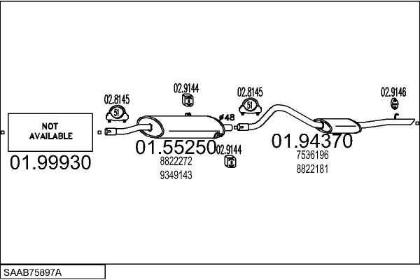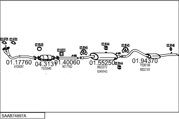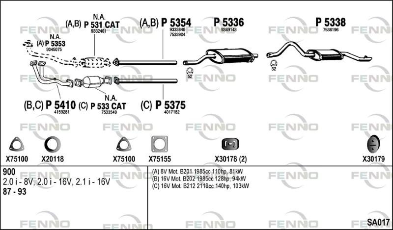 SAAB 900 I Kabriolet 2.1 -16 - Výfukový systém - kompletní od 8/1990 do 6/1994, 2119 ccm, 100 kW, 136 hp, B212I, Kabriolet