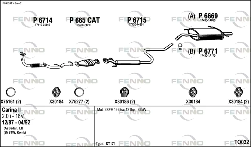 TOYOTA CARINA V kombi (_T17_) 2.0 (ST171_, ST171R) - Výfukový systém - kompletní od 12/1987 do 4/1992, 1998 ccm, 89 kW, 121 hp, 3S-FE, kombi