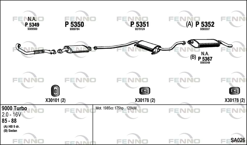 SAAB 9000 2.0 -16 Turbo - Výfukový systém - kompletní od 4/1985 do 12/1991, 1985 ccm, 129 kW, 175 hp, B202XL, limuzína