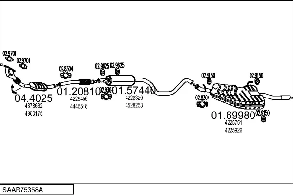 SAAB 900 II kupé 2.3 -16 - Výfukový systém - kompletní od 12/1993 do 2/1998, 2290 ccm, 110 kW, 150 hp, B234I, kupé