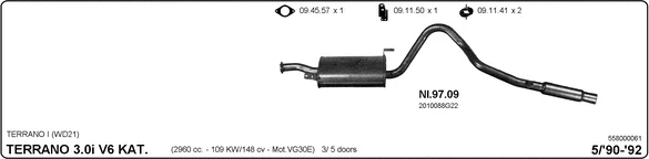 NISSAN TERRANO I (WD21) 3.0 i 4WD - Výfukový systém - kompletní od 1/1990 do 12/1995, 2960 ccm, 109 kW, 148 hp, VG30E, uzavřený terénní vůz
