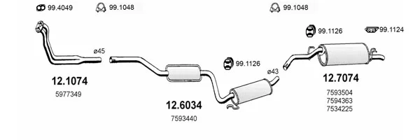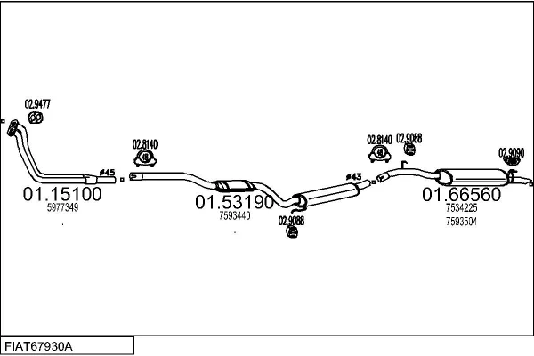 FIAT REGATA (138_) 85 1.6 - Výfukový systém - kompletní od 10/1983 do 6/1990, 1585 ccm, 60 kW, 82 hp, 149 A.000, limuzína