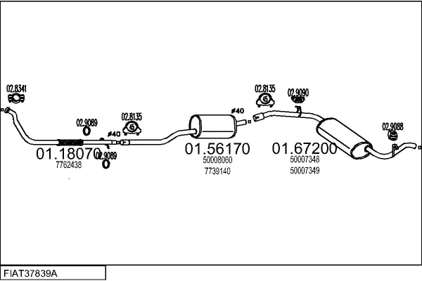 FIAT FIORINO Skříňová/velkoprostorová limuzína (146_) 60 1.7 D - Výfukový systém - kompletní od 5/1988 do 10/1996, 1697 ccm, 42 kW, 57 hp, 146 B2.000, Skříňová/velkoprostorová limuzína