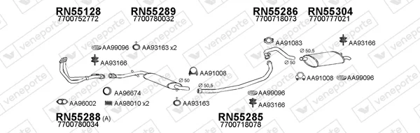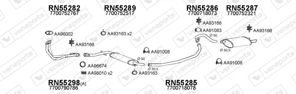 RENAULT 25 (B29_) 2.2 (B29E) - Výfukový systém - kompletní od 4/1984 do 12/1989, 2165 ccm, 91 kW, 124 hp, J7T 730, J7T 731, Šikmá zadní část