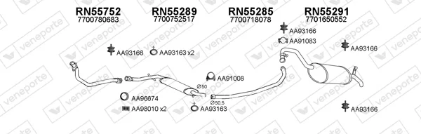 RENAULT 25 (B29_) 2.1 Diesel (B296) - Výfukový systém - kompletní od 6/1989 do 12/1992, 2068 ccm, 51 kW, 69 hp, J8S 736, Šikmá zadní část