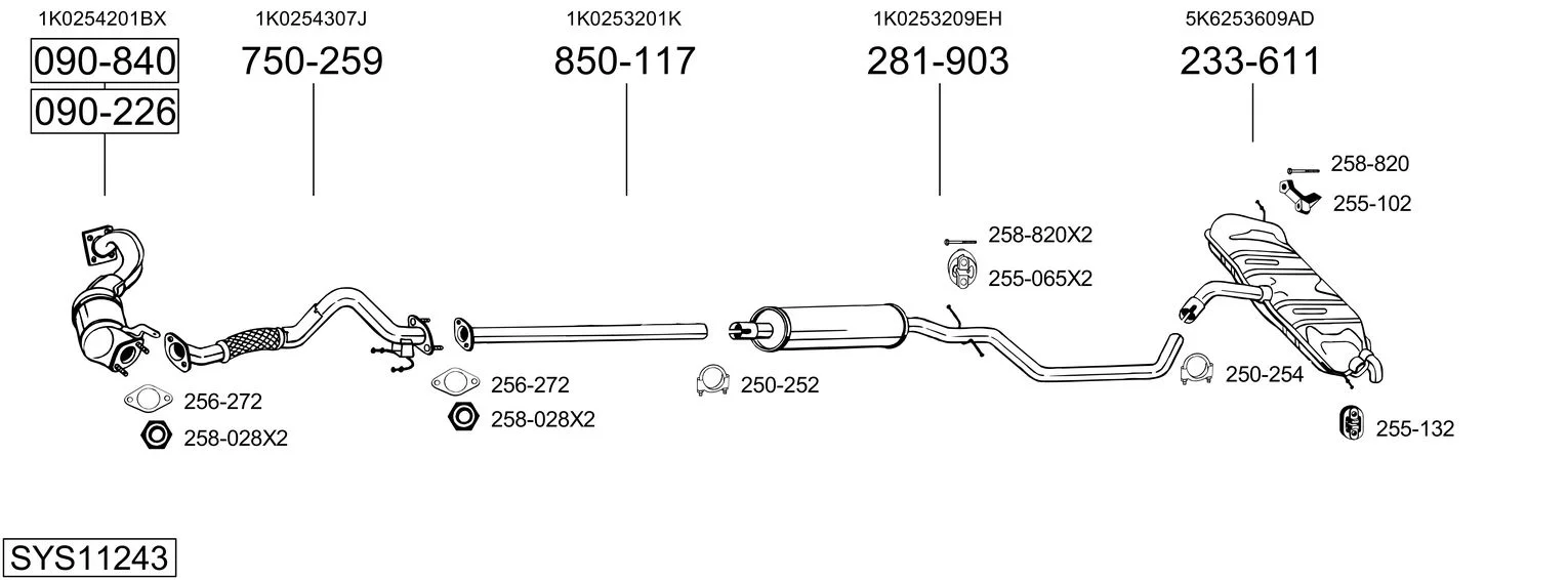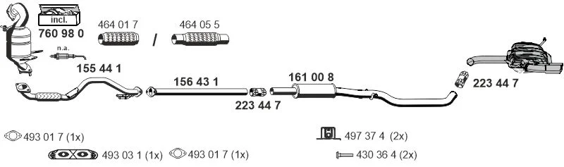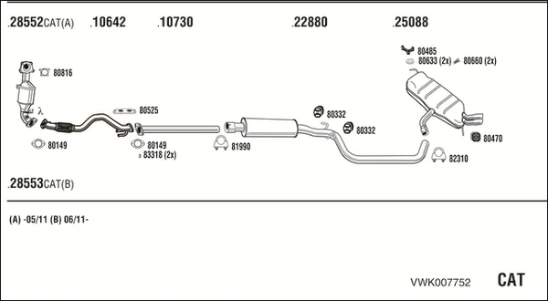 VW GOLF PLUS V (5M1, 521) 1.2 TSI - Výfukový systém - kompletní od 5/2010 do 12/2013, 1197 ccm, 63 kW, 86 hp, CBZA, Šikmá zadní část