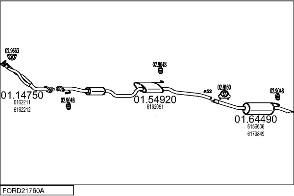 FORD SIERRA II Šikmá zadní část (GBC, GBG) 2.0 i - Výfukový systém - kompletní od 1/1987 do 2/1993, 1993 ccm, 85 kW, 115 hp, N4A, N4I, Šikmá zadní část