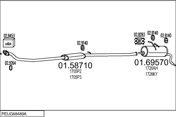 PEUGEOT PARTNER Skříňová/velkoprostorová limuzína (5_, G_) 1.9 D - Výfukový systém - kompletní od 6/1996 do 12/2002, 1905 ccm, 51 kW, 69 hp, DJY (XUD9A), Skříňová/velkoprostorová limuzína