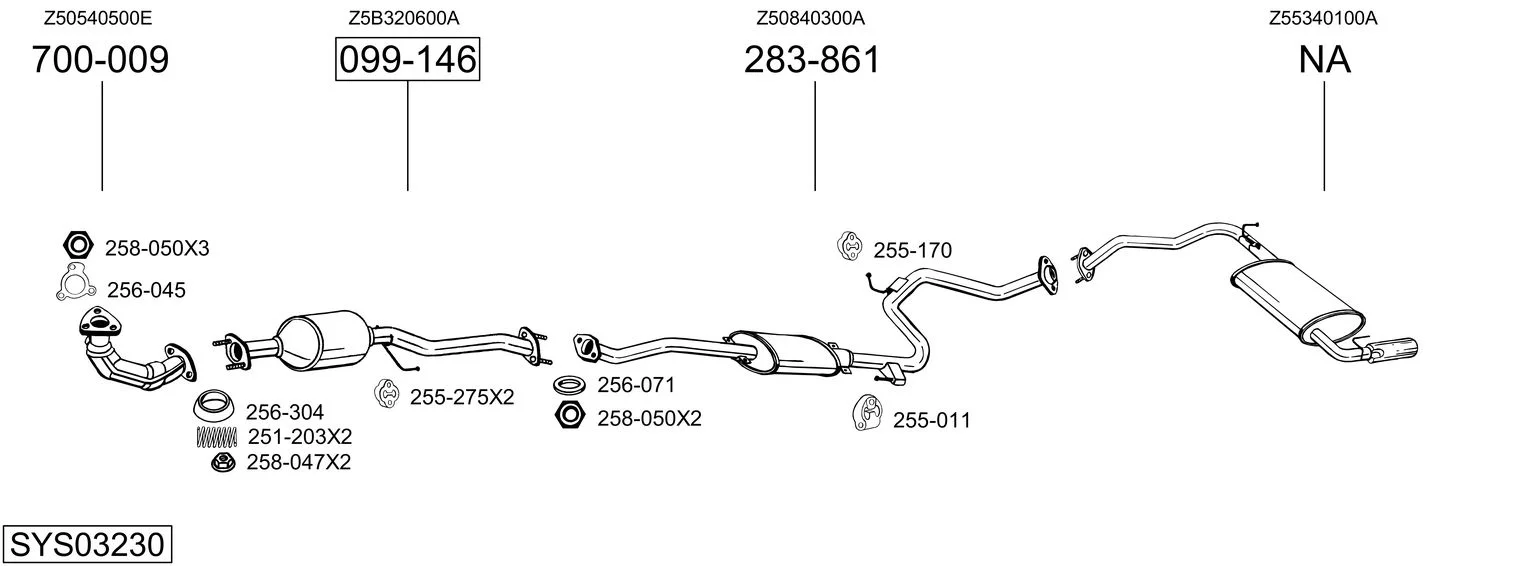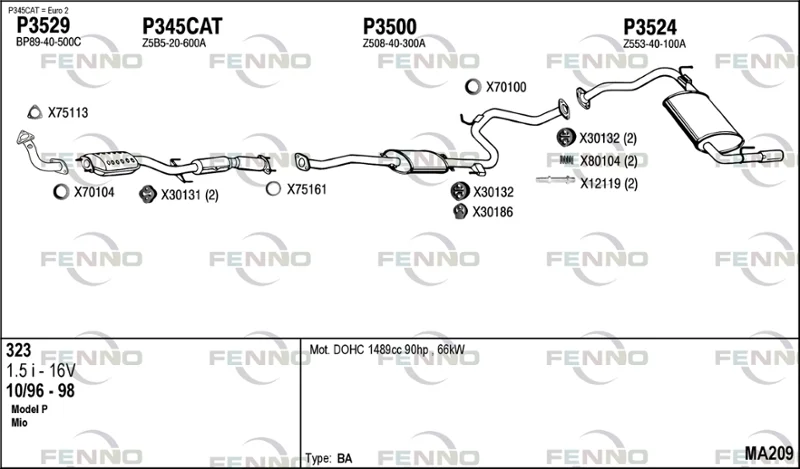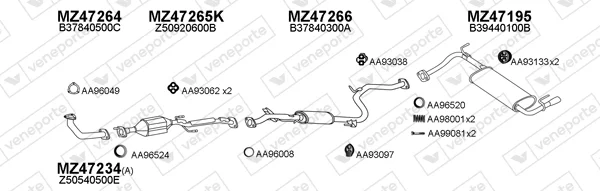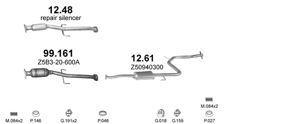 MAZDA 323 P V (BA) 1.5 16V - Výfukový systém - kompletní od 10/1996 do 9/1998, 1489 ccm, 65 kW, 88 hp, Z5-DE, Šikmá zadní část
