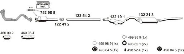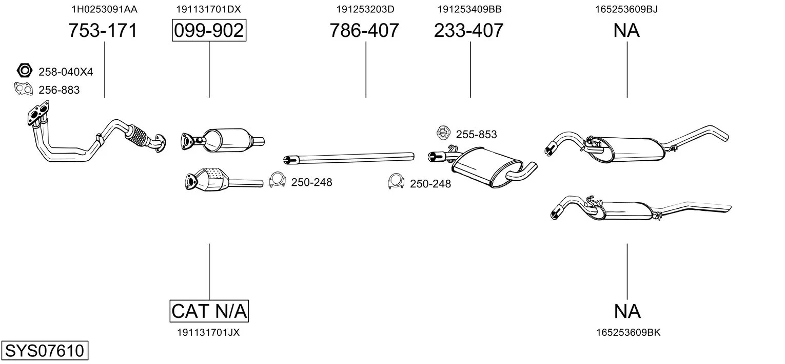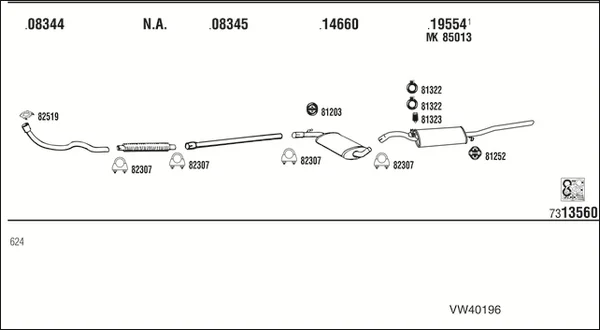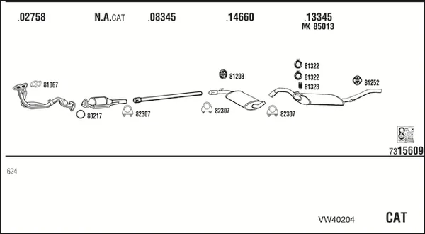 VW JETTA II (19E, 1G2, 165) 1.3 Cat - Výfukový systém - kompletní od 6/1987 do 12/1991, 1272 ccm, 40 kW, 55 hp, 2G, MH, NZ, limuzína
