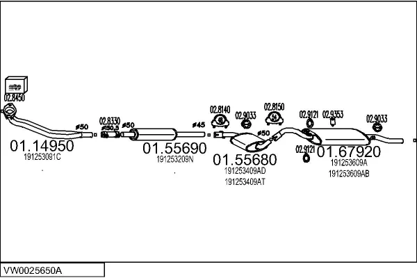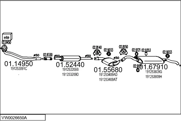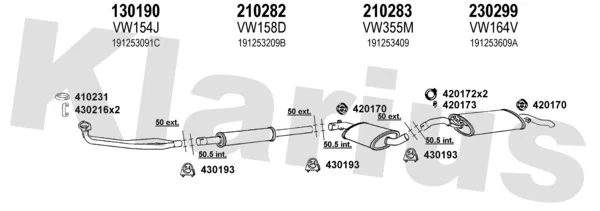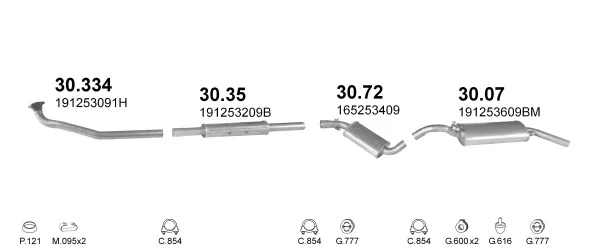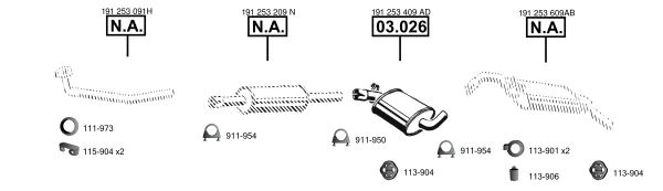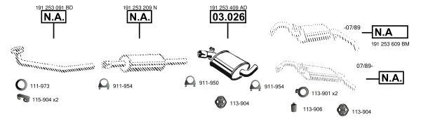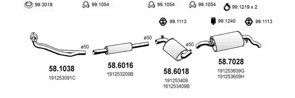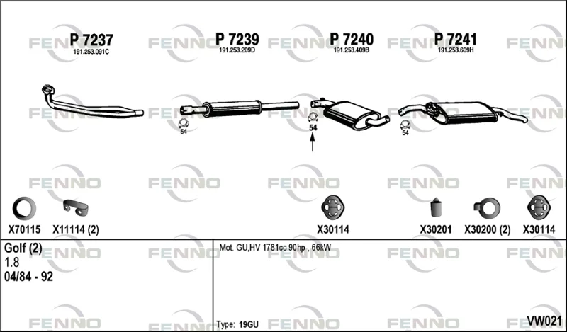 VW GOLF II (19E, 1G1) 1.8 - Výfukový systém - kompletní od 8/1984 do 10/1991, 1781 ccm, 66 kW, 90 hp, GU, GX, HV, Šikmá zadní část