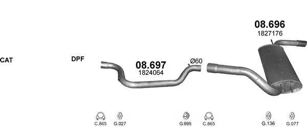 FORD FOCUS III Turnier 2.0 TDCi - Výfukový systém - kompletní od 7/2010 do 6/2014, 1997 ccm, 103 kW, 140 hp, UFDB, kombi