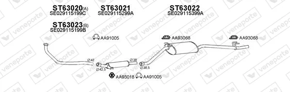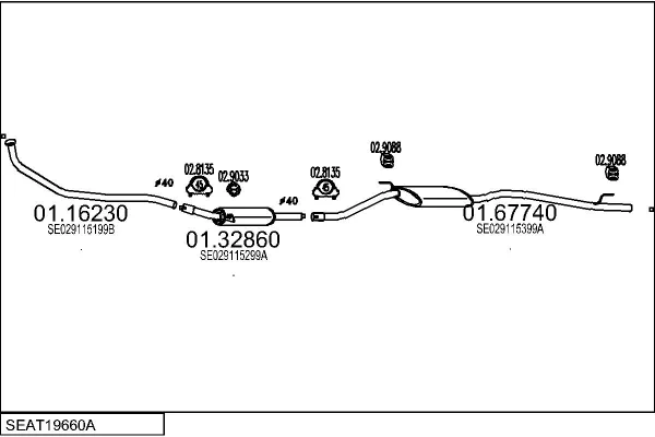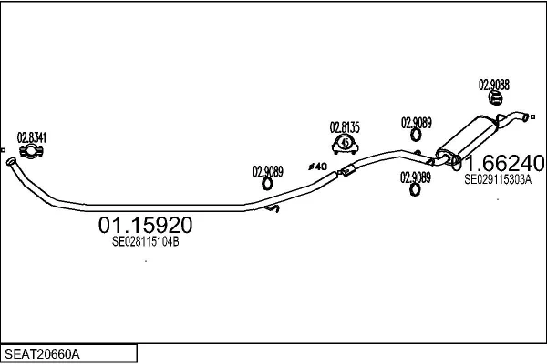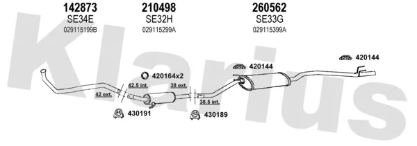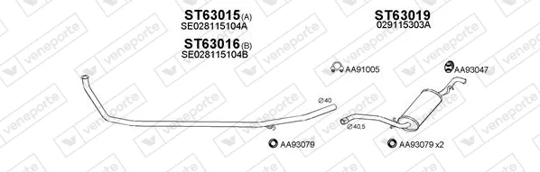 SEAT TERRA karoserie/kombi (024A) 0.9 - Výfukový systém - kompletní od 1/1987 do 12/1995, 903 ccm, 29 kW, 40 hp, 09 NCA, karoserie/kombi