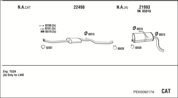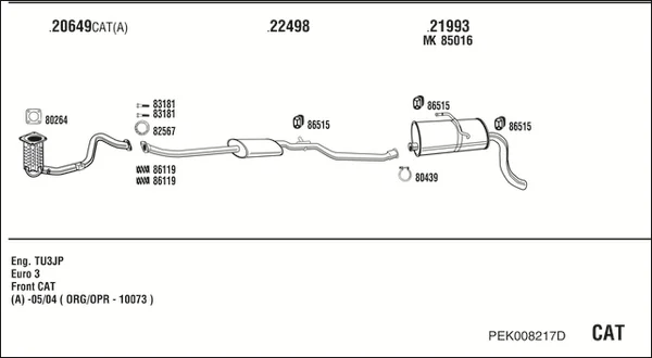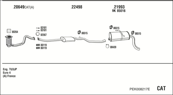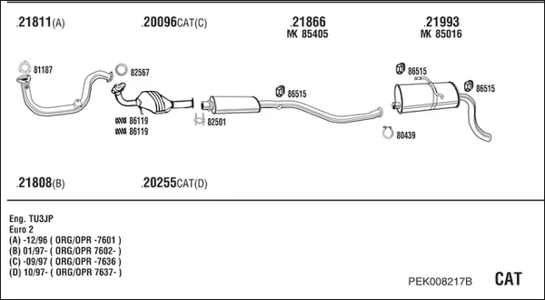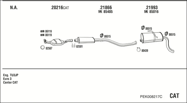 PEUGEOT PARTNER velkoprostorová limuzína (5_, G_) 1.4 - Výfukový systém - kompletní od 6/1996 do 12/2015, 1360 ccm, 55 kW, 75 hp, KFW (TU3A), KFW (TU3JP), KFX (TU3JP), velkoprostorová limuzína