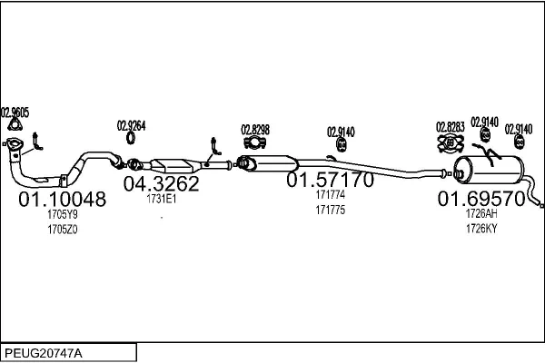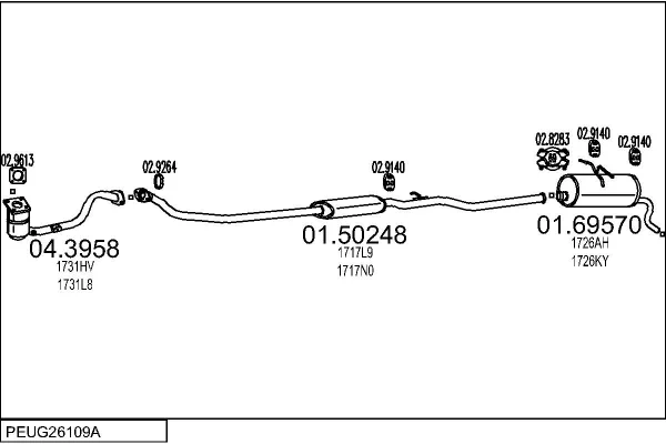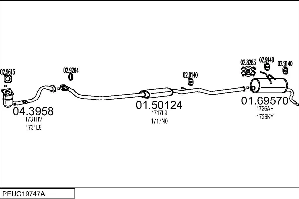 PEUGEOT PARTNER velkoprostorová limuzína (5_, G_) 1.4 - Výfukový systém - kompletní od 6/1996 do 12/2015, 1360 ccm, 55 kW, 75 hp, KFW (TU3A), KFW (TU3JP), KFX (TU3JP), velkoprostorová limuzína