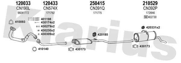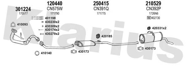 PEUGEOT PARTNER velkoprostorová limuzína (5_, G_) 1.4 - Výfukový systém - kompletní od 6/1996 do 12/2015, 1360 ccm, 55 kW, 75 hp, KFW (TU3A), KFW (TU3JP), KFX (TU3JP), velkoprostorová limuzína