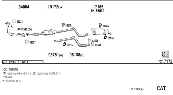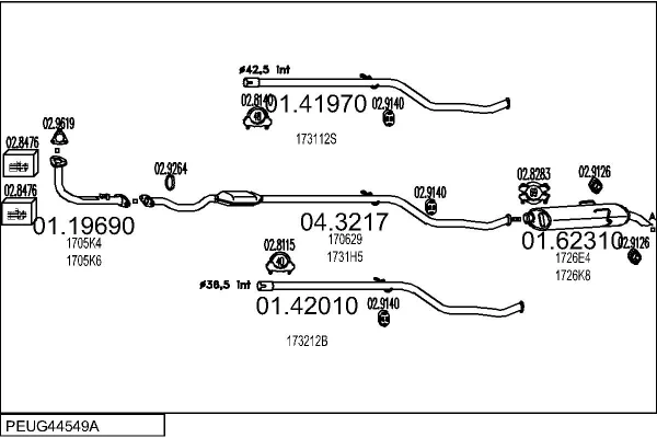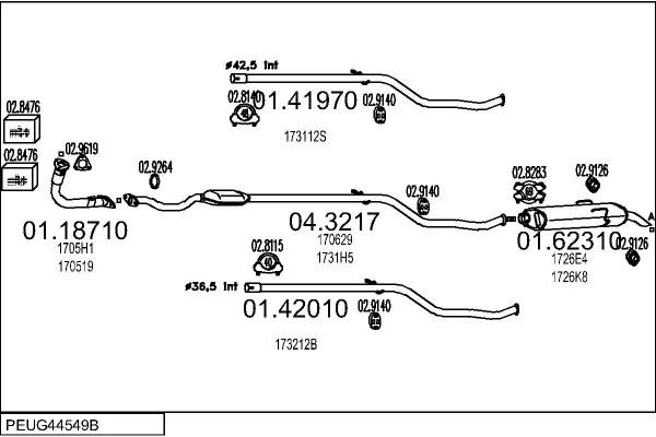 PEUGEOT 106 I (1A, 1C) 1.0 - Výfukový systém - kompletní od 9/1991 do 4/1996, 954 ccm, 37 kW, 50 hp, CDZ (TU9M), Šikmá zadní část