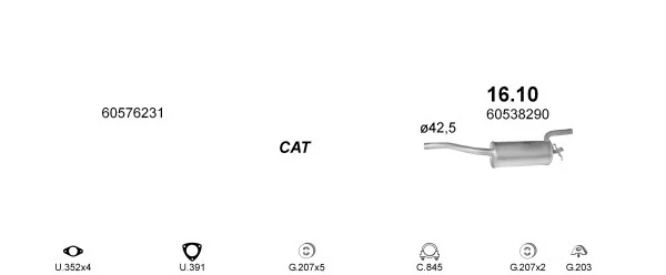 ALFA ROMEO 33 (907_) 1.5 i.e (907A2B) - Výfukový systém - kompletní od 1/1990 do 9/1994, 1490 ccm, 71 kW, 97 hp, AR 30751, Šikmá zadní část