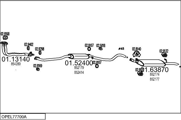 OPEL ASCONA C (J82) 1.8 E (F11, M11, F68, M68) - Výfukový systém - kompletní od 1/1985 do 8/1986, 1796 ccm, 74 kW, 100 hp, C 18 NE, S 18 NV, limuzína