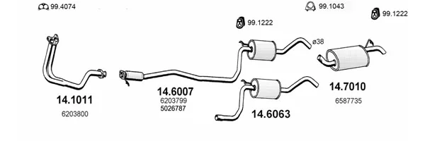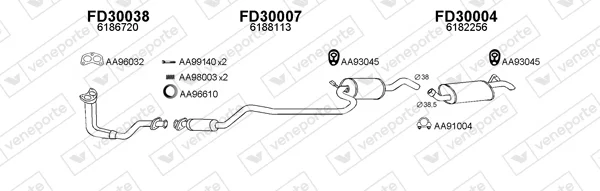 FORD FIESTA III (GFJ) 1.0 - Výfukový systém - kompletní od 3/1989 do 12/1995, 1001 ccm, 33 kW, 45 hp, TLB, Šikmá zadní část