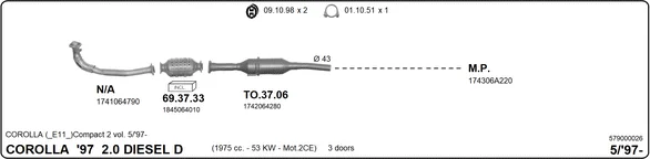 TOYOTA COROLLA Compact (_E11_) 2.0 D (CE110_, CE110R) - Výfukový systém - kompletní od 4/1997 do 2/2000, 1975 ccm, 53 kW, 72 hp, 2C-E, Šikmá zadní část