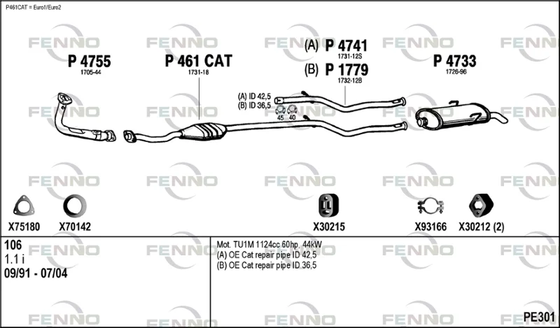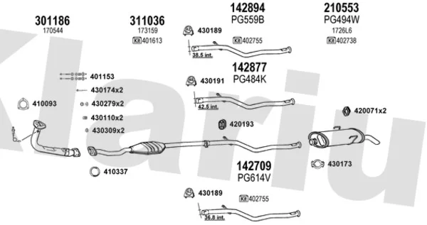 PEUGEOT 106 II (1A_, 1C_) 1.1 i - Výfukový systém - kompletní od 1/1997 do 3/2001, 1124 ccm, 40 kW, 54 hp, HDY (TU1M+), Šikmá zadní část